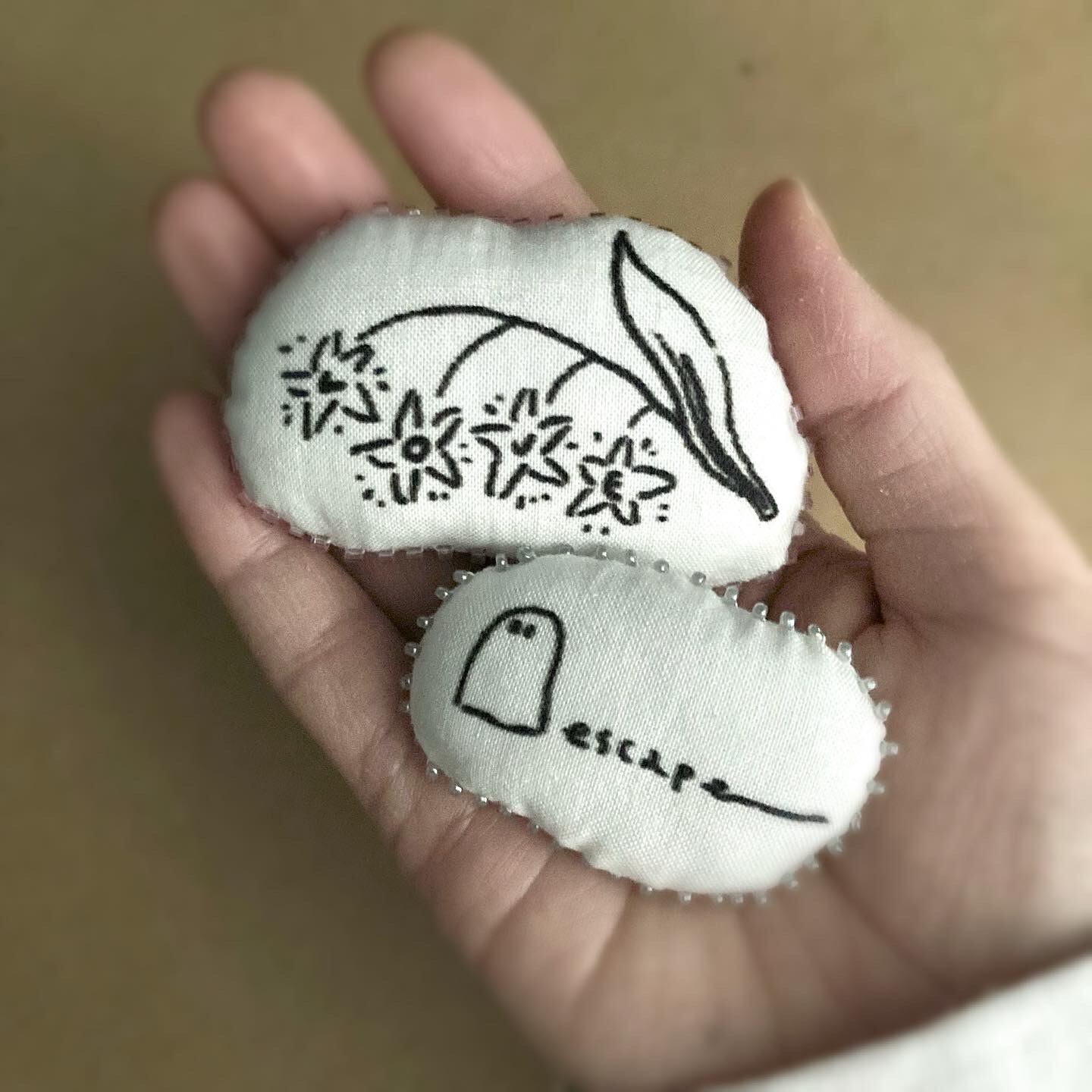 裏は小さなパッチワークで磁石が縫い付けられています。