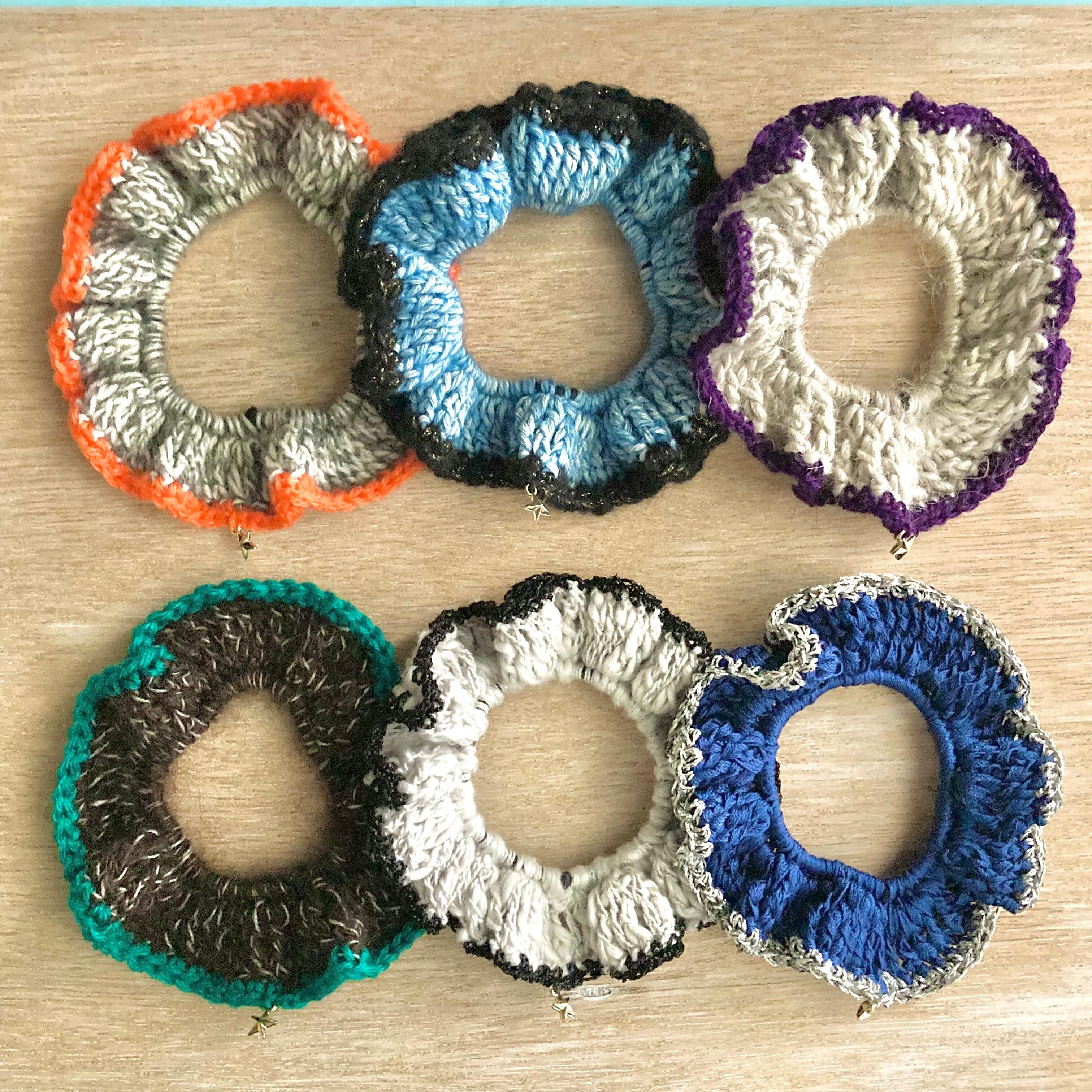 さまざまな糸を使ったシュシュはシンプルなコーディネートのポイントになります。