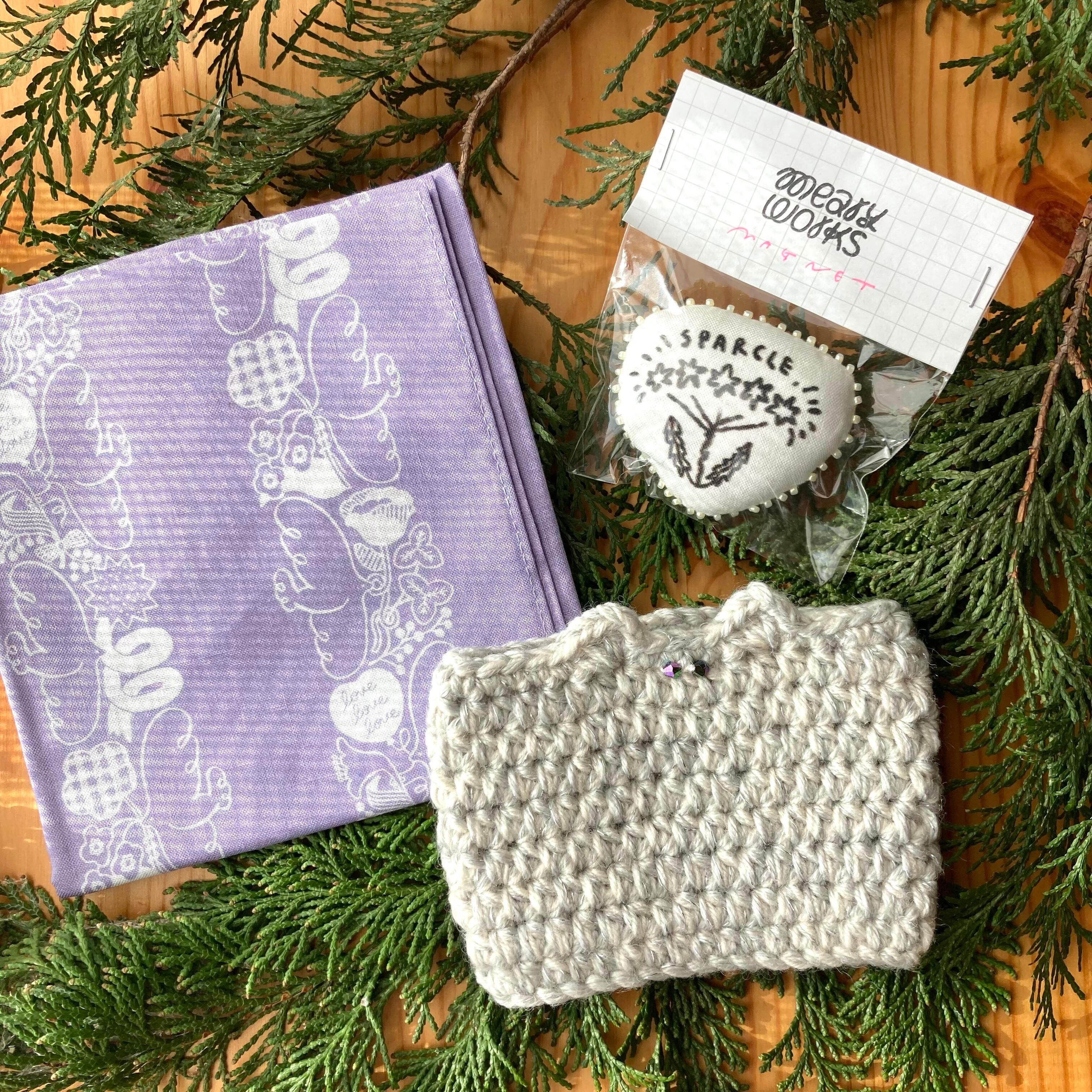 薄手で乾きやすい綿素材で、大きめのハンカチとしても使いやすいです。スカーフ代わりに首に巻いたり、お弁当を包んだり、なにかと使えます。優しいラベンダーカラー。プレゼントにもおすすめです◎