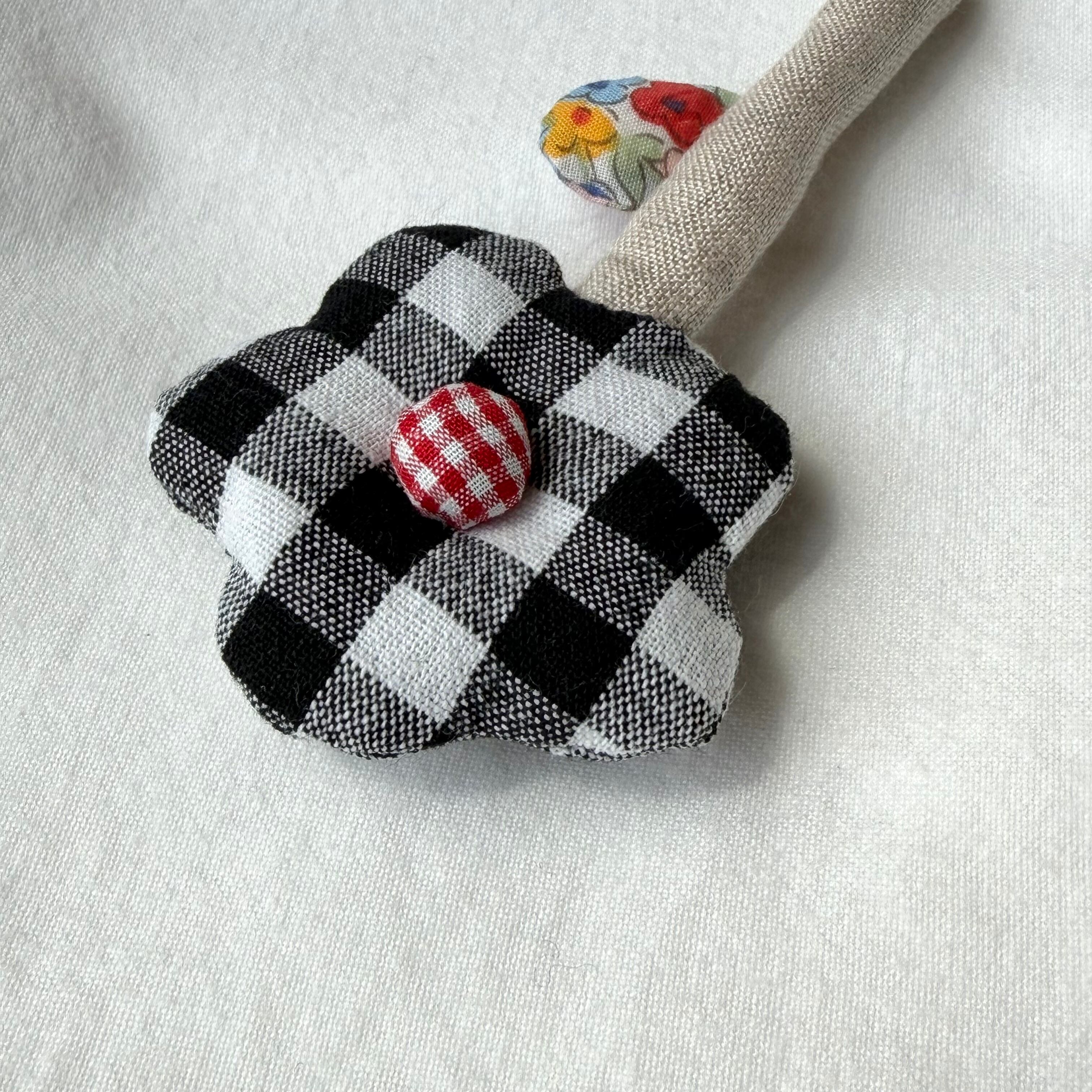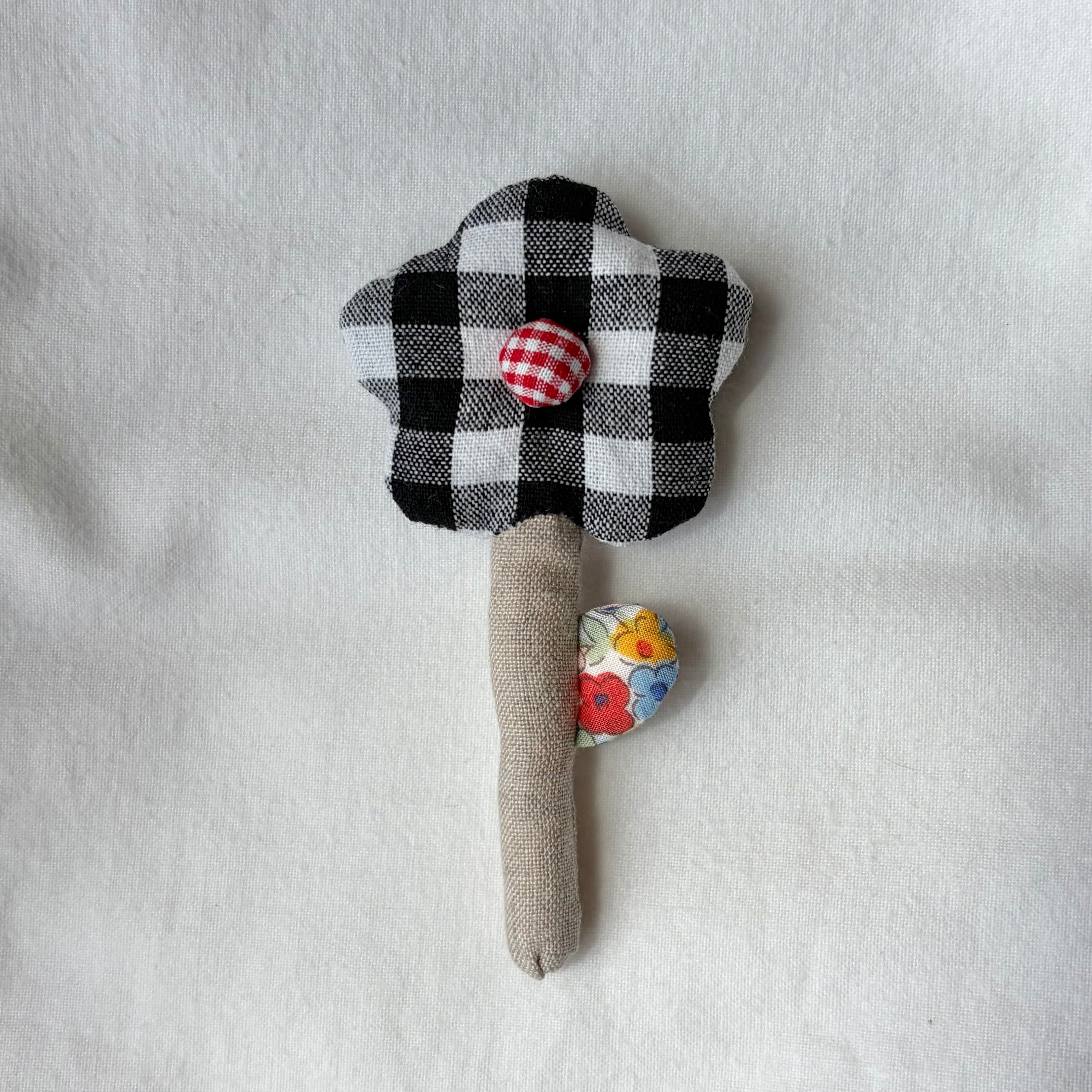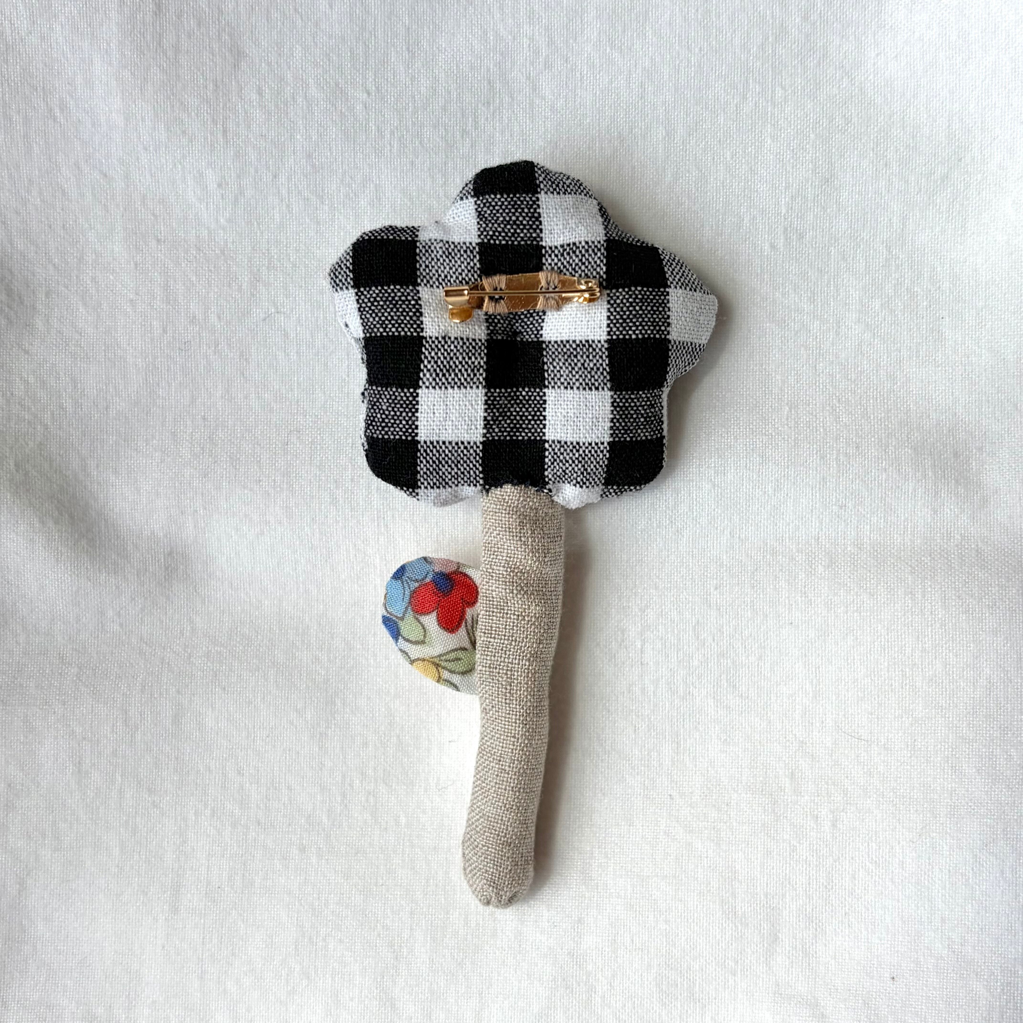 色んな生地を組み合わせ、世界にひとつだけのお花のブローチを作りました。