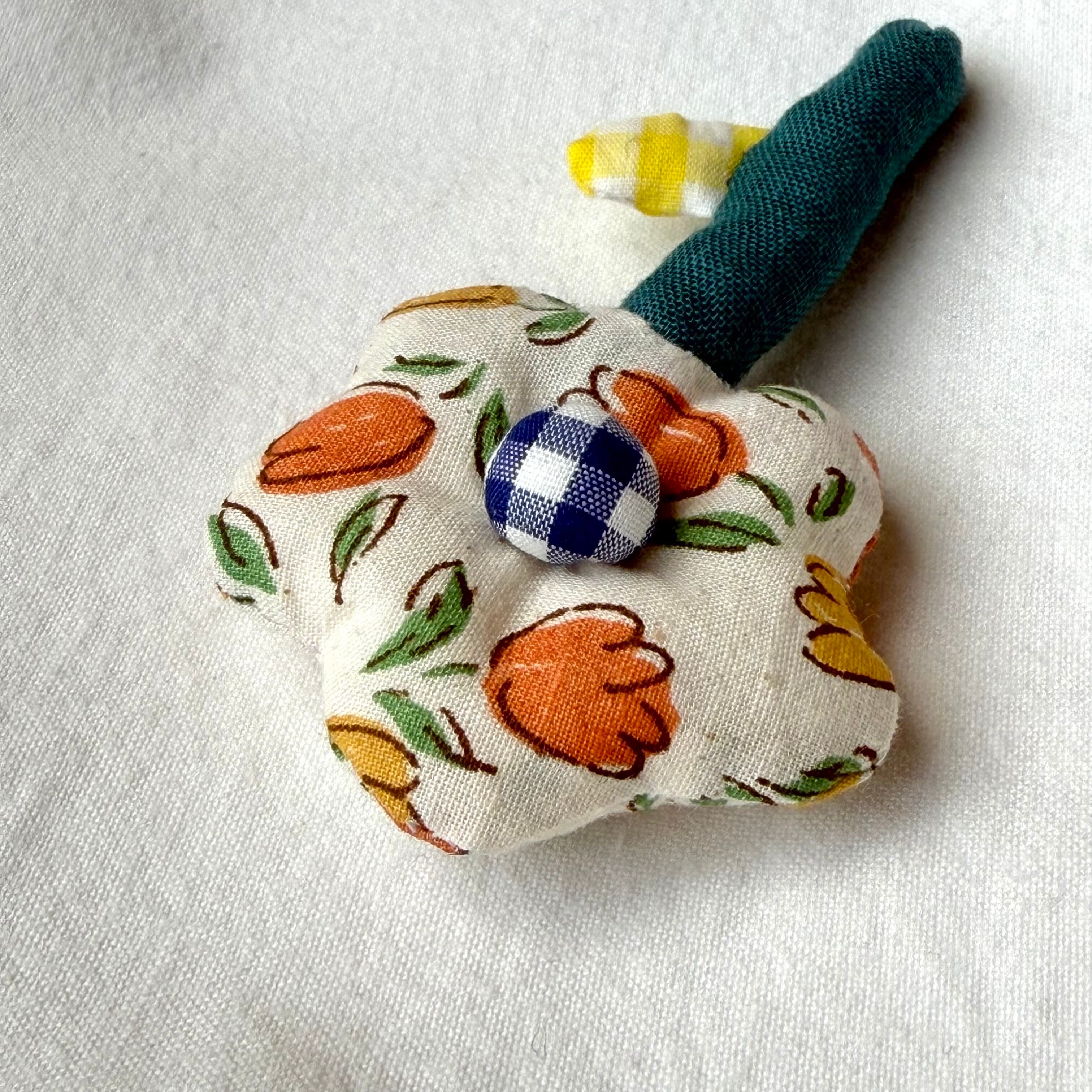 色んな生地を組み合わせ、世界にひとつだけのお花のブローチを作りました。