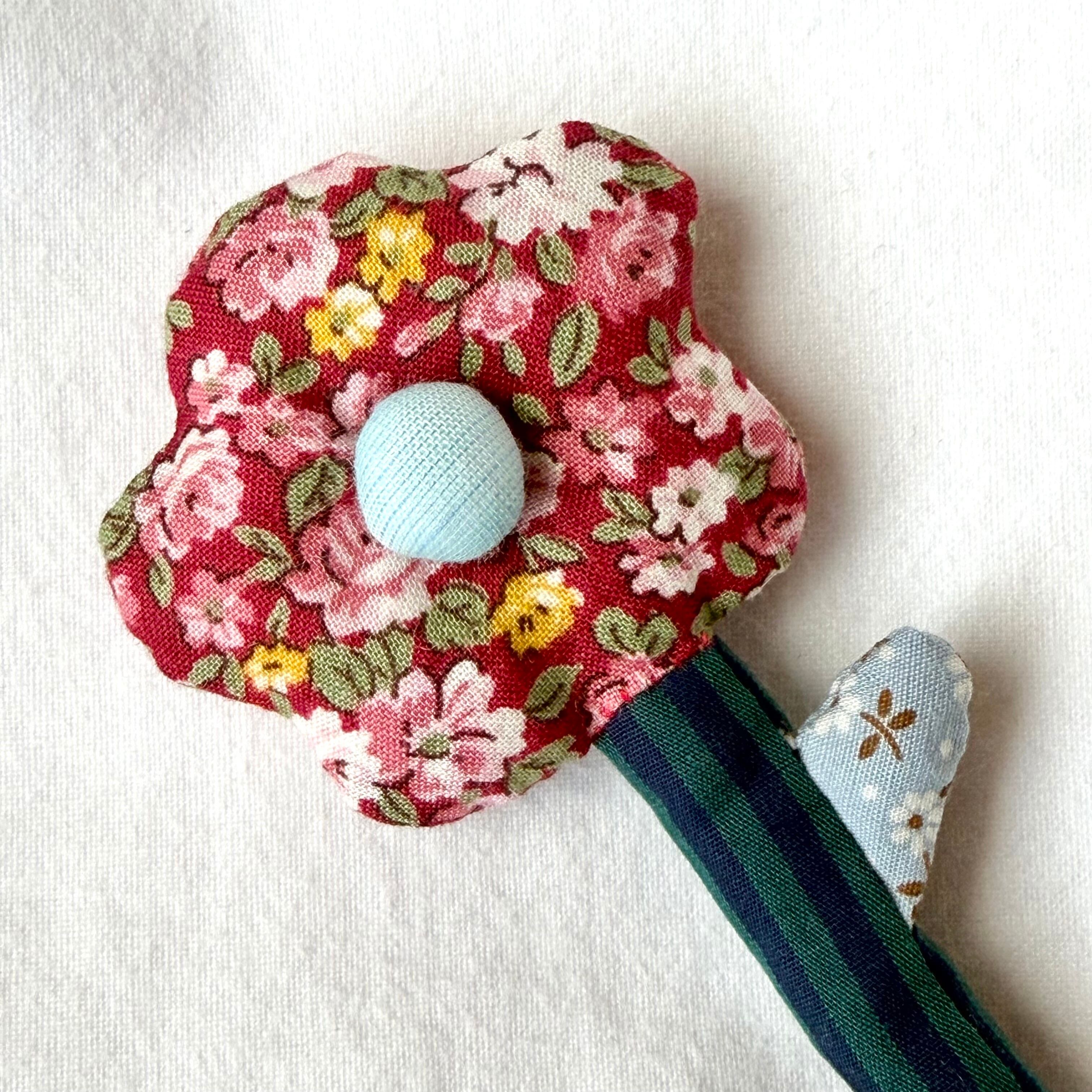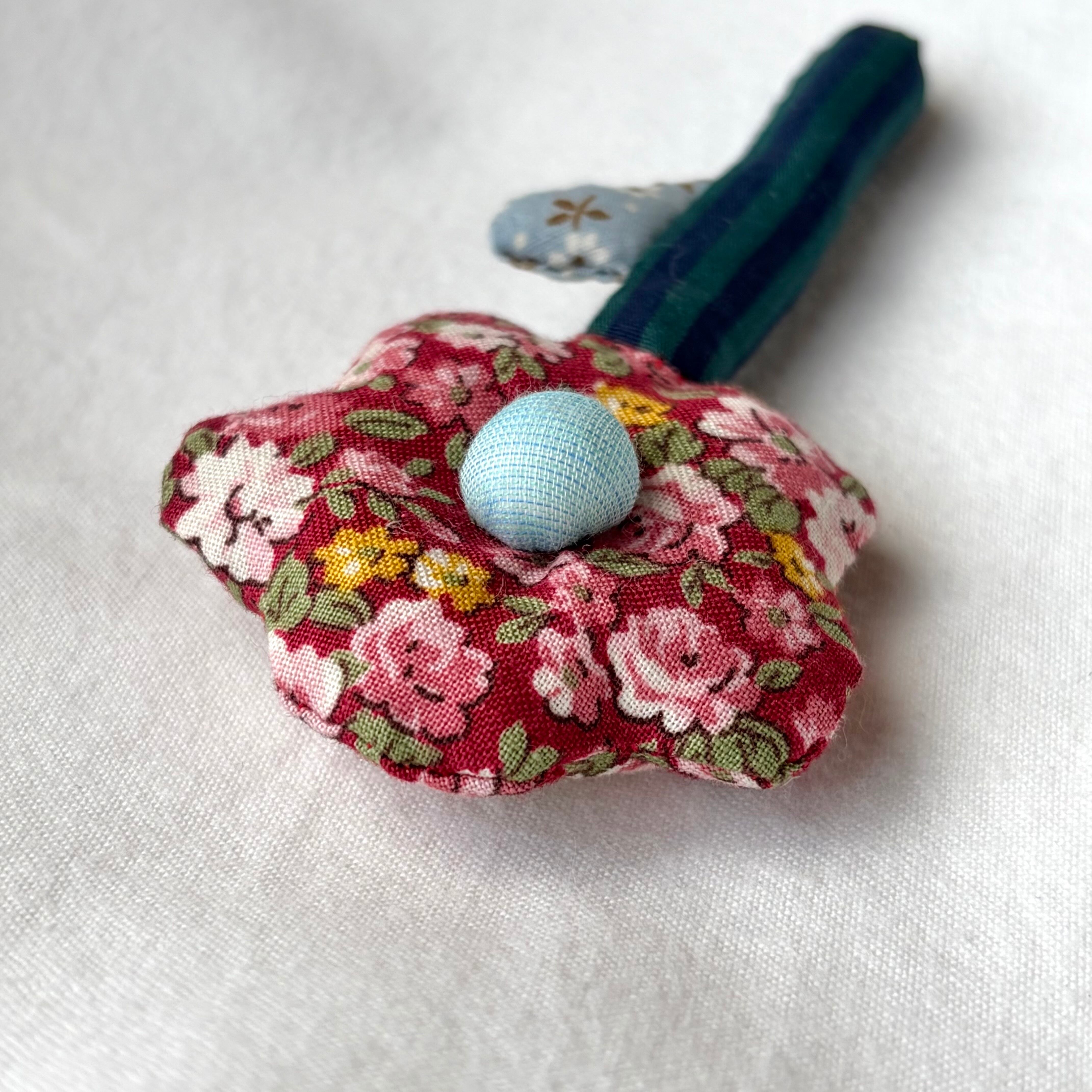 色んな生地を組み合わせ、世界にひとつだけのお花のブローチを作りました。