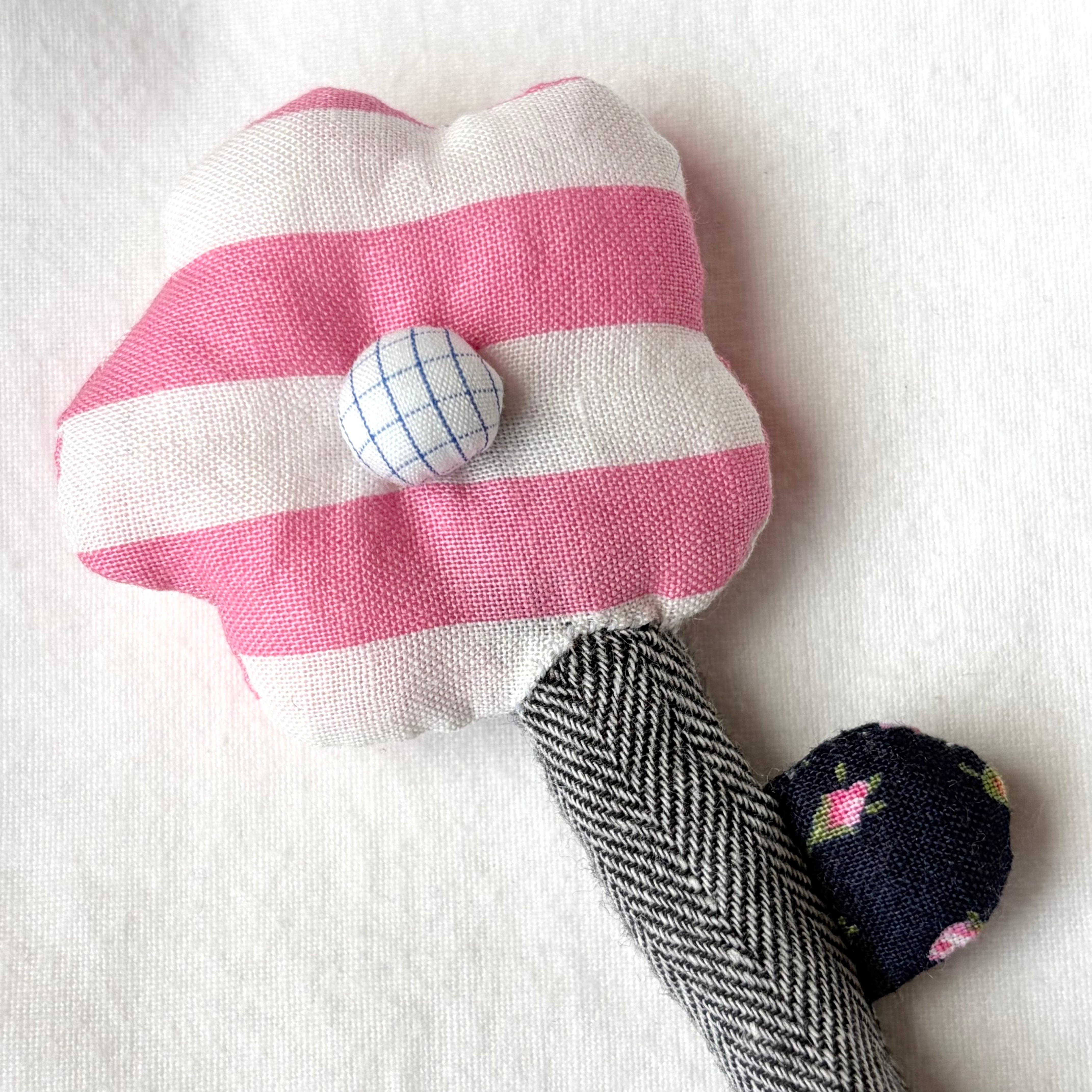 色んな生地を組み合わせ、世界にひとつだけのお花のブローチを作りました。