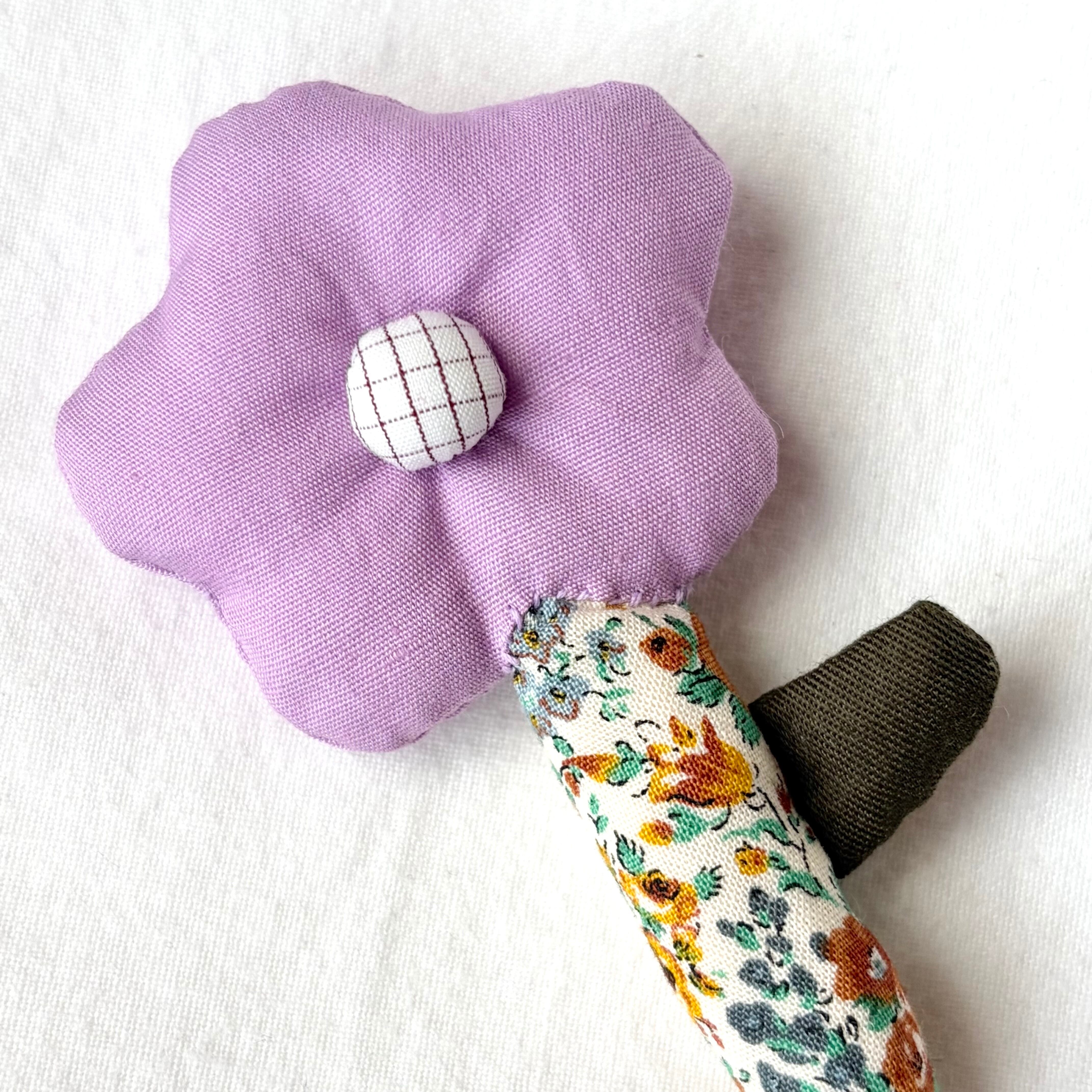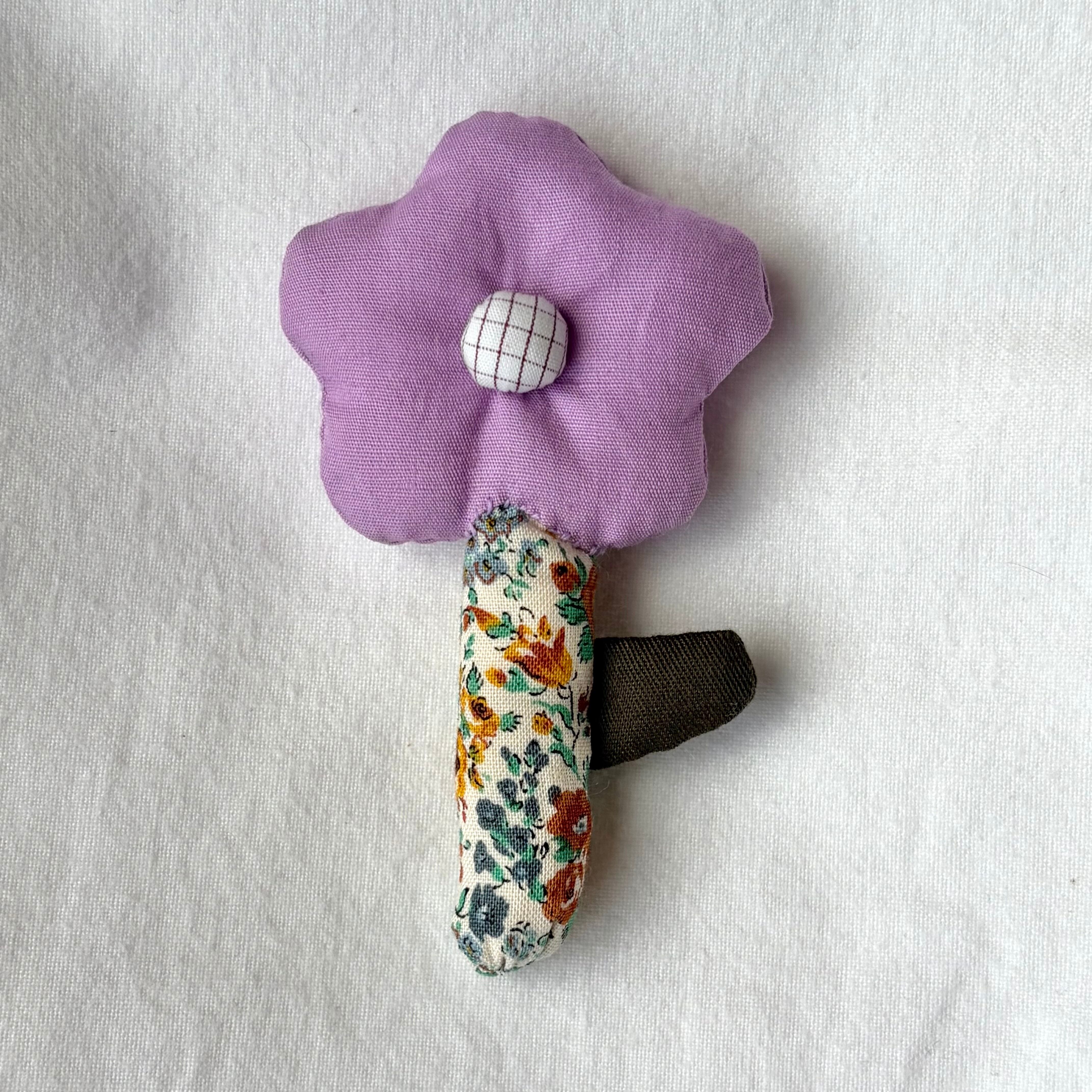 色んな生地を組み合わせ、世界にひとつだけのお花のブローチを作りました。