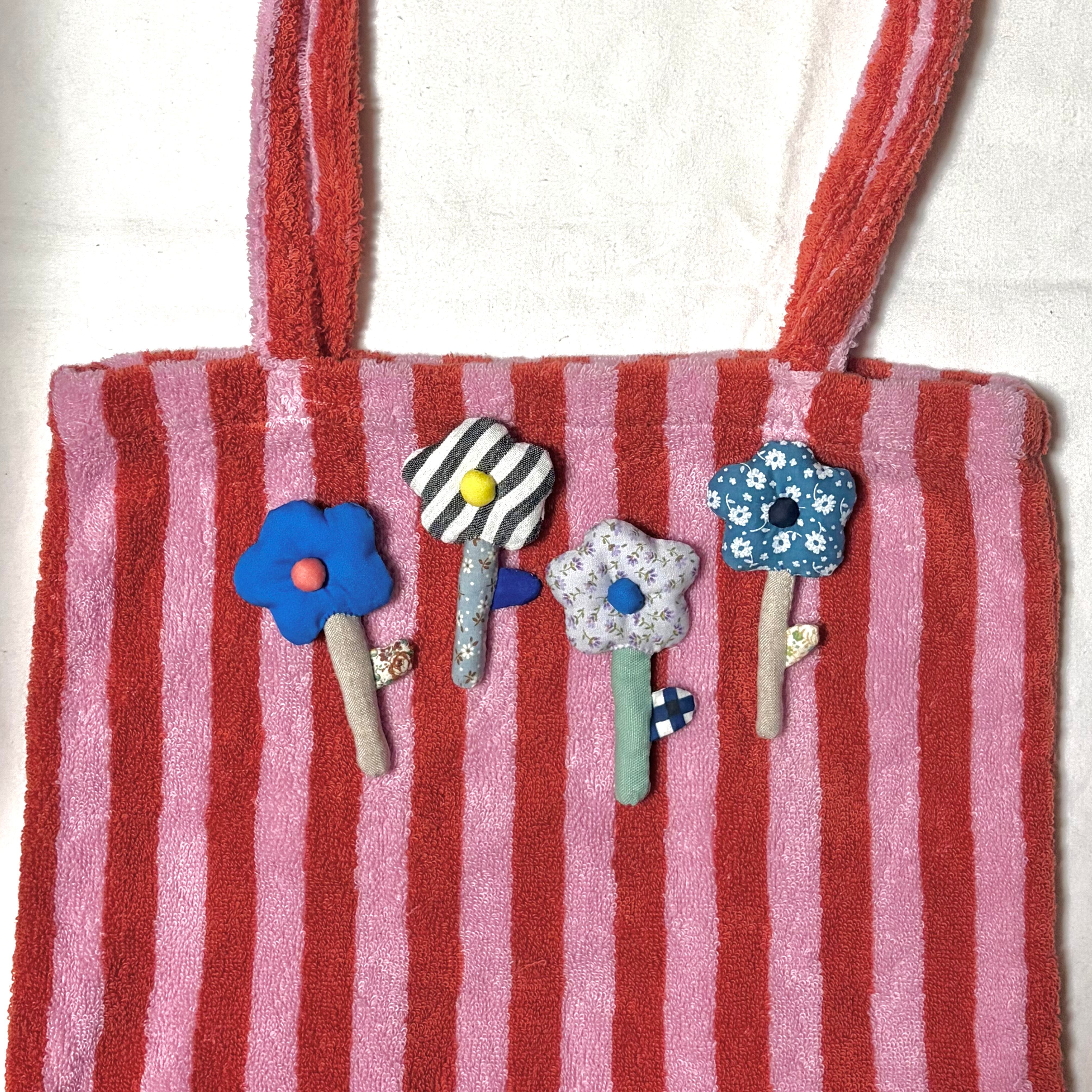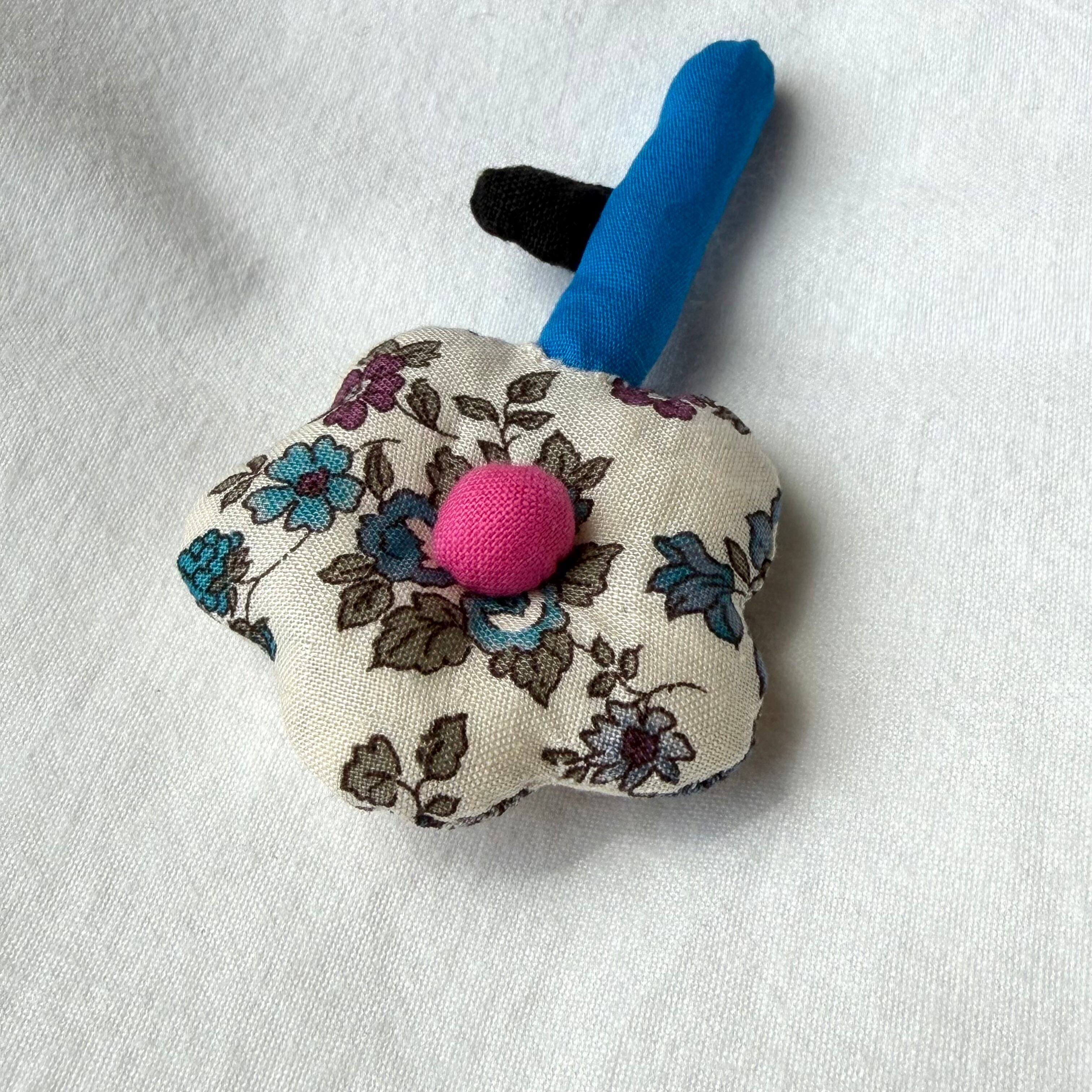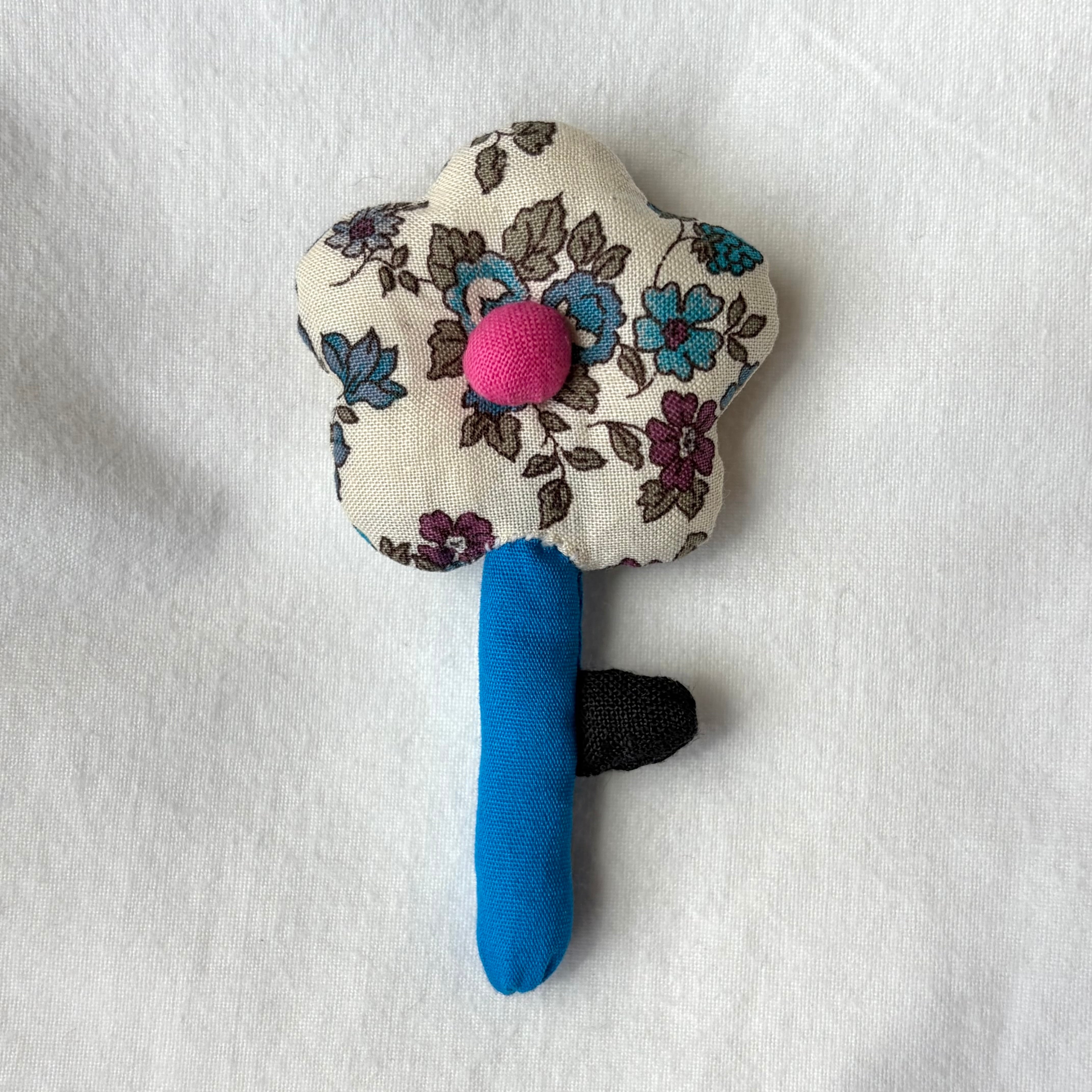 色んな生地を組み合わせ、世界にひとつだけのお花のブローチを作りました。
