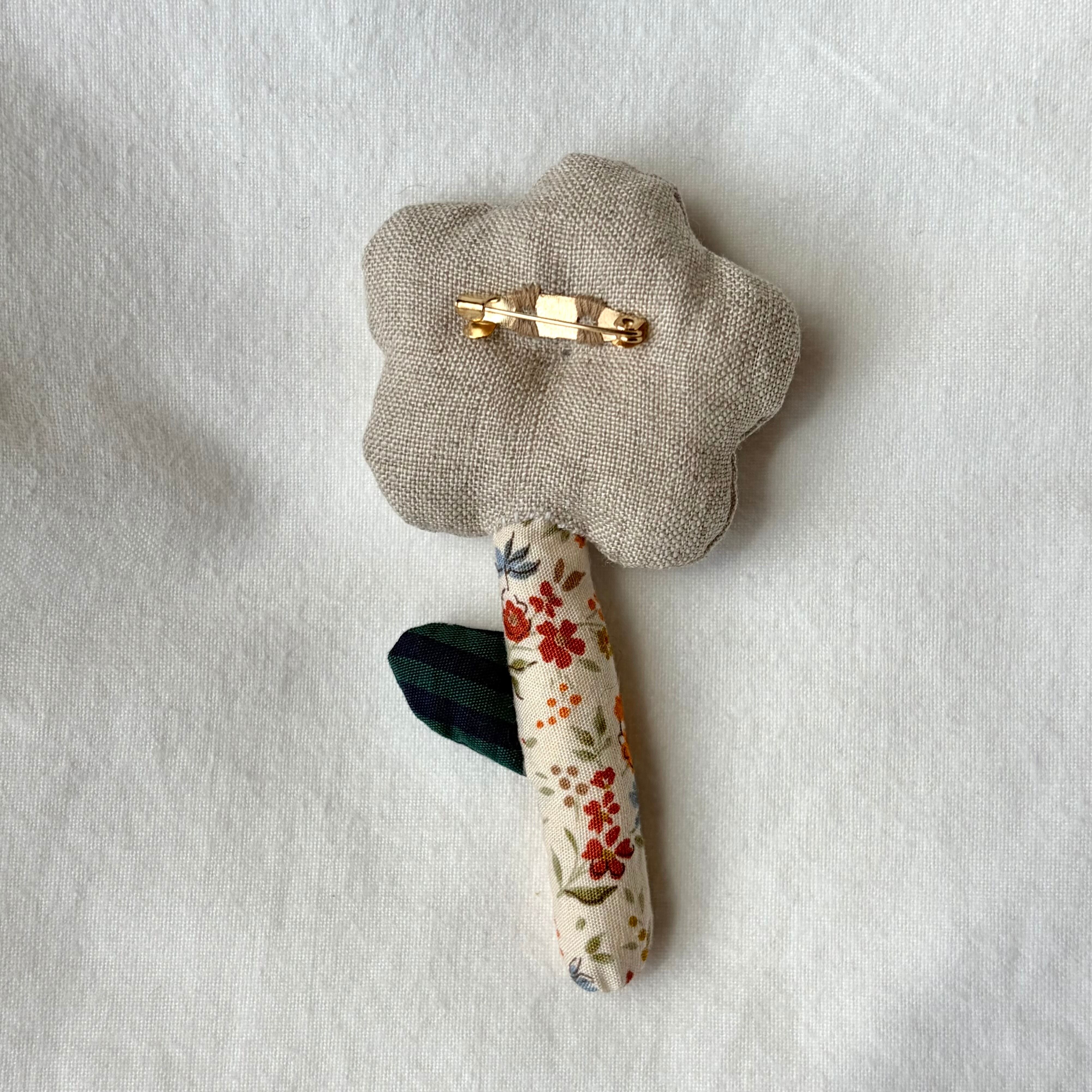 色んな生地を組み合わせ、世界にひとつだけのお花のブローチを作りました。
